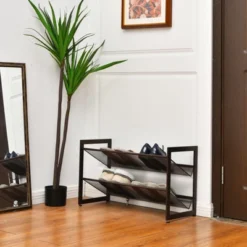 Tangkula Iron Shoe Shelf 2/3/4-Tier Space Saving Layered Shoes Shelving Shoes Storage Organizer