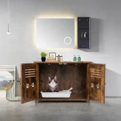 Tangkula Large Litter Box Enclosure Cat Wooden Storage Cabinet With 2 Doors Coffee