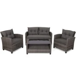 Tangkula 4-Piece Outdoor Patio Furniture Set Rattan Wicker Conversation Sofa Set With Coffee Table