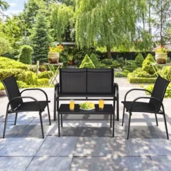 Tangkula 4PCS Furniture Set Chairs And Coffee Table Patio Garden Black