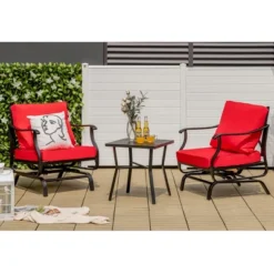 Tangkula 3PCS Outdoor Rocking Chair Set Patio Conversation Bistro Set W/ Red Cushions