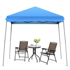 Tangkula 2-Piece Folding Outdoor Patio Chair Sling Back Camping Chair With Armrest & Pillow