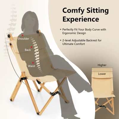 - Comfortable to Sit: Different from others, this folding camping chair features 2-level adjustable backrest that provides better support for your shoulder, back and waist for ultimate comfort. Besides, the breathable canvas is specially selected to avoid stuffiness.