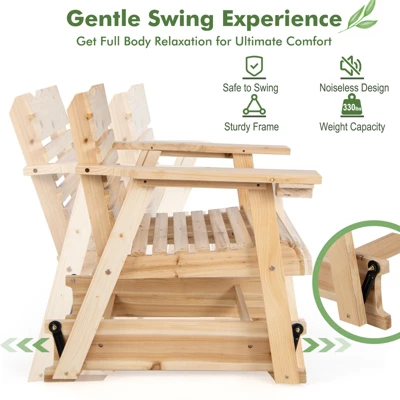 - Selected Fir Wood: The burr-free and solid fir wood makes this outdoor glider chair stable to sturdily support 330 lbs weight capacity and long-lasting to ensure a long outdoor lifespan. And the natural color adds a rustic addition to different places, such as the porch, balcony and patio, etc.