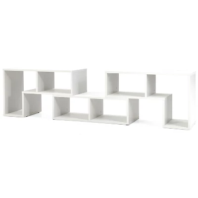 Wanna add extra storage space to keep your home clean and organized? Wanna an elegant TV stand or a console table to match your modern home style? Our 3 PCS console TV stand definitely satisfies your needs! It is composed of 2 L-shaped shelves and 1 rectangular shelf, which can be combined at will. Whether used as a TV stand, a bookshelf or an ordinary storage cabinet, it will be a perfect choice. Featuring 6 open compartments, the console table bookcase provides classified storage areas to store a variety of items and add charm to your room. Made of premium board, the TV stand can withstand large capacity. And different combination style means different load bearing capacity. In addition, there are many non-slip pads to enhance the stability and steadiness. Simple and stylish appearance adds some character to your home style! You can put it in the living room, bedroom, living room, bedroom, entryway, or hallway.