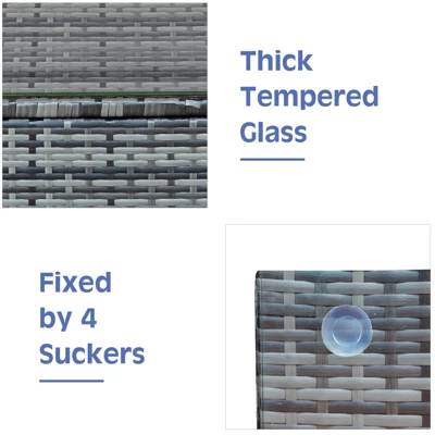 Our 3-piece outdoor rattan furniture set is made of sturdy steel and premium rattan, which is sturdy and durable and can be used for long time. Come with a tempered glass top table, not only can you place some drinks or snacks on hard tabletop to take conveniently but also some decors like vase can be put on the tabletop. The rattan sofas are ergonomically designed to give you the best support and make you cozy. Come with padded cushions, the sofa set provides the ultimate comfort and make you totally relax. In addition, the removable cover of cushion with smooth zipper is easy to clean. It’s perfect to relax and enjoy time with your friends and family!