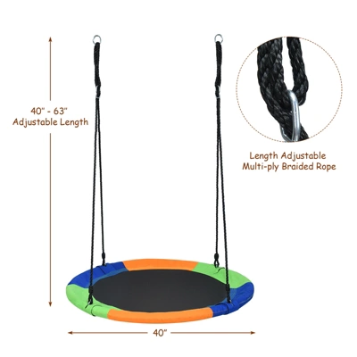 - Happy Swing Memory: The saucer mat swing provides a fun hang out spot for your kids to safely swing into action for playtime or relaxation. Update your backyard with this 40” saucer swing! It surely will create lasting precious happy memory for your kids.