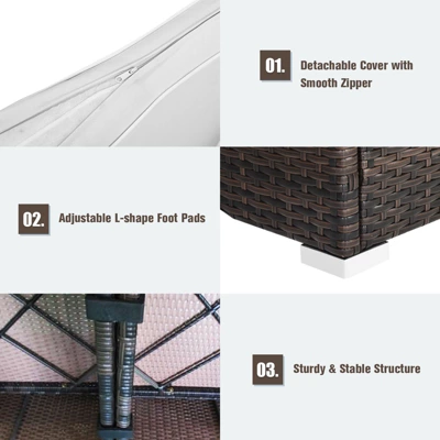 - 【Premium Material & Sturdy Frame】 Constructed from durable PE rattan and high quality steel frame, our patio furniture set has strong load-bearing capacity and can be used for a long time. The aluminum foot pads are designed to enhance the stability, you can adjust the knobs at the bottom to accommodate the uneven floor.