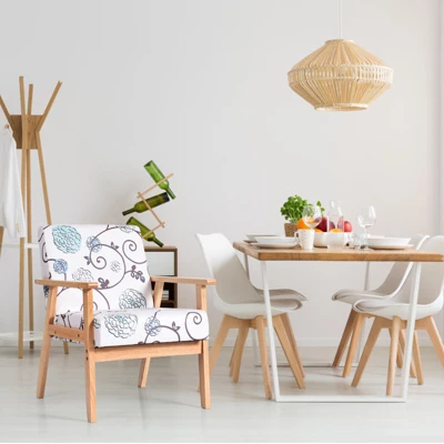 Our accent chair is made of solid wood frame and rubber wood armrest, which is very stable and durable for a long lifespan. Wide backrest and thick cushion are padded with high-quality sponge to ensure optimal softness and good resilience. Solid wood frame makes the chair stable and durable. Thanks to premium materials, it can withstand up to 265 lbs without wobbling. What’s more, rubber wood armrest and ergonomic curved back can perfectly conform to the curve of the body to fully relax yourself. Beautiful patterns enhance your home decor style.You can put the accent chair in your living room and reception room to serve your guests, as well as on your balcony to enjoy your own leisure time.
