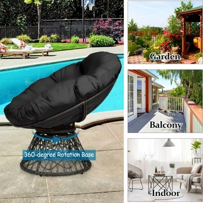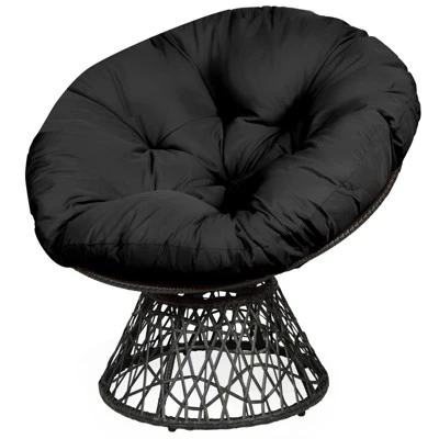 Our super soft Papasan chair is extremely comfortable. The rattan chair is made of steel frame and wrapped with weather-resistant wicker, so you can use long term without deformation. And the base can rotate 360 degrees, so that you can play and rest. Equipped with thick and soft cushion, it brings great comfort and pleasure. Sitting in the chair, listening to your favorite songs or drinking a cup of coffee is your ambition for a day. With stylish and modern design, our easy, casual Papasan chair adds a bit of fun to your living room, backyard or garden!