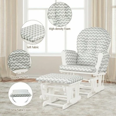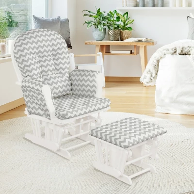 - 【Ergonomic Glider & Ottoman Set】 With high back, wide armrest and seat, the nursery glider perfectly fits your body curve to offer better support and more comfortable sitting experience. What’s more, the ottoman provides an ideal place to hold your legs, reliving back and hip pressure and relaxing your feet.