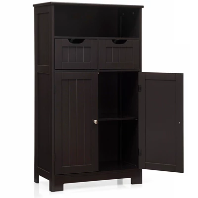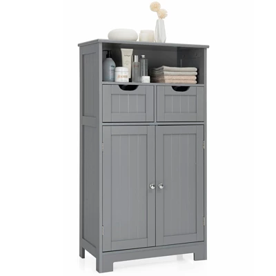 This Floor cabinet is made of premium MDF with a clean finish, which promises for a long service life. Whatever a compact apartment, den or spacious studio, this classic cabinet lets you take advantage of every corner. This white free standing cabinet will be a great gift for your family and friends. 2 drawers can be adjusted in different positions, which can store your personal belongings. Ample practical space to store your bath supplies, aromatherapy, crafts, books, spice jar, or other stuffs. In addition, this is a unique design that equipped with magnetic button to prevent items from falling. It’s your perfect furniture choicefor home or office, don’t hesitate it!