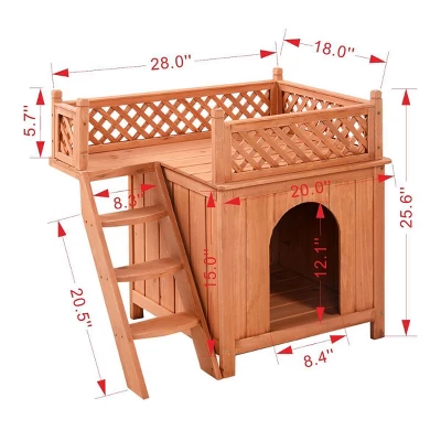 - 【2-Tier Design Guarantees Enough Activity Space】2-story wooden pet dog house, including an indoor lounge area, climbable stairs, and a rooftop balcony with a railing, allows your dog to play, relax, sunbathe, sleep and fully enjoy their outdoor activities. The enough space of this dog house will offer double fun to your puppy dog.